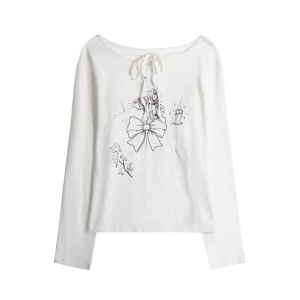 Simple Butterfly Print Graffiti Lace-Up Long Sleeves
